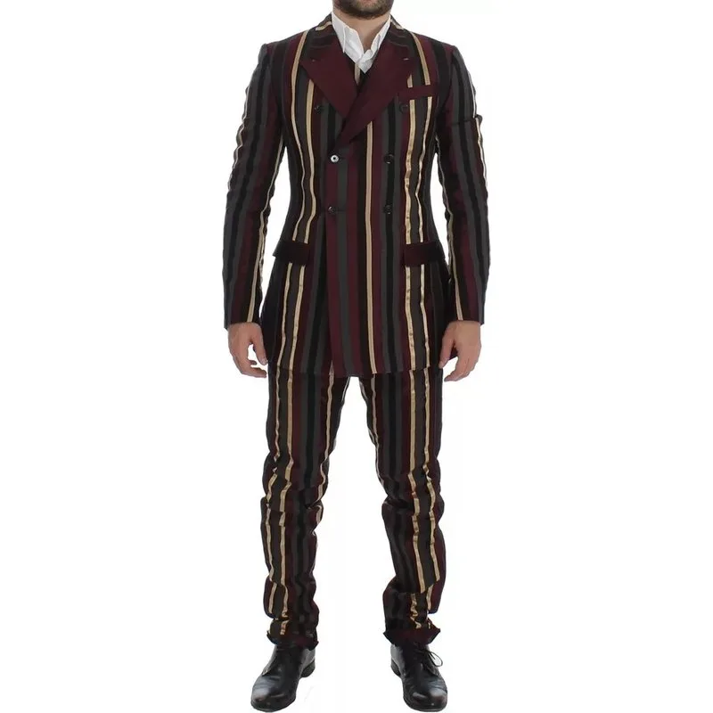 Veelkleurige Gestreepte Suit Dubbeldoorgeknoopte Blazer
