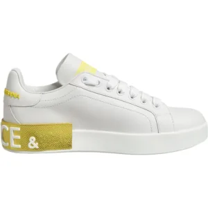 Dolce & Gabbana Witte Gele Portofino Leren Sneakerschoenen