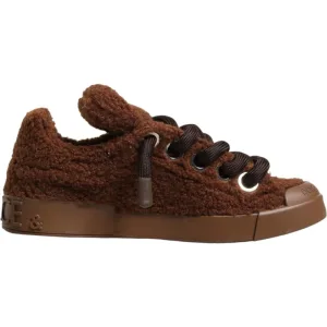 Dolce & Gabbana Bruine Nep Schapenvacht Lage Sneakerschoenen