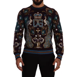 Dolce & Gabbana Heren Bordeaux Kasjmier DG Kroon Geborduurde Trui