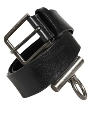 Dolce & Gabbana Zwarte Leren Metalen Gesp Klassieke Herenriem