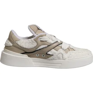 Dolce & Gabbana Witte Beige Nep-Shearling Lage Sneakers Schoenen