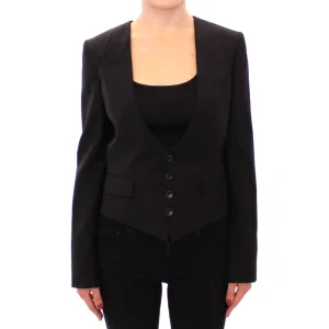 Dolce & Gabbana Dameszwarte Zijden Sjaal Rug Blazer Jasje
