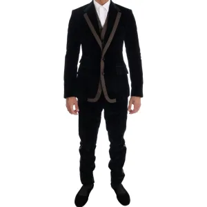 Dolce & Gabbana Heren Blauw Fluweel Twee Knoops Slim 3-Delig Pak