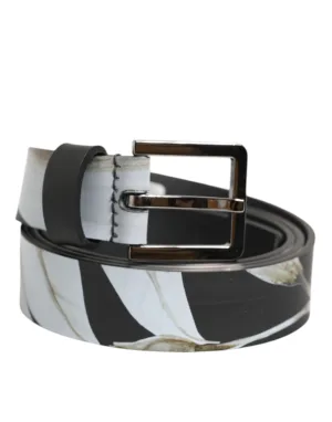 Dolce & Gabbana Zwarte Witte Gestreepte Logo Metaal Gesp Riem