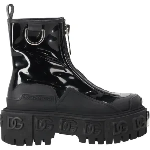 Dolce & Gabbana High Trekking Ritssluiting Enkelboots in Zwart Glanzend Leer