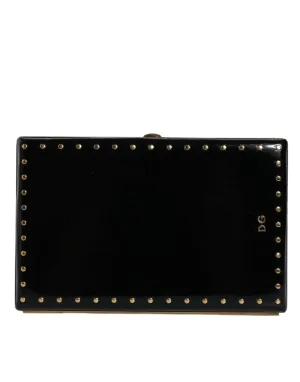 Zwart Leren Studs Gouden Frame Clutch Avondtas