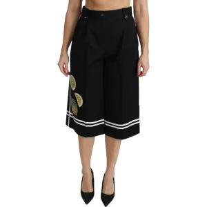 Dolce & Gabbana Zwarte Wollen Stretch Geplooide Broek