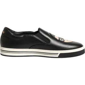 Dolce & Gabbana Zwarte Leren Signature Figures Sneakers Schoenen
