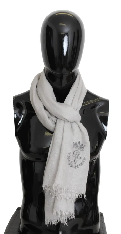 Dolce & Gabbana Heren Sjaal Off White DG Kroon Geborduurd Nek Wikkel