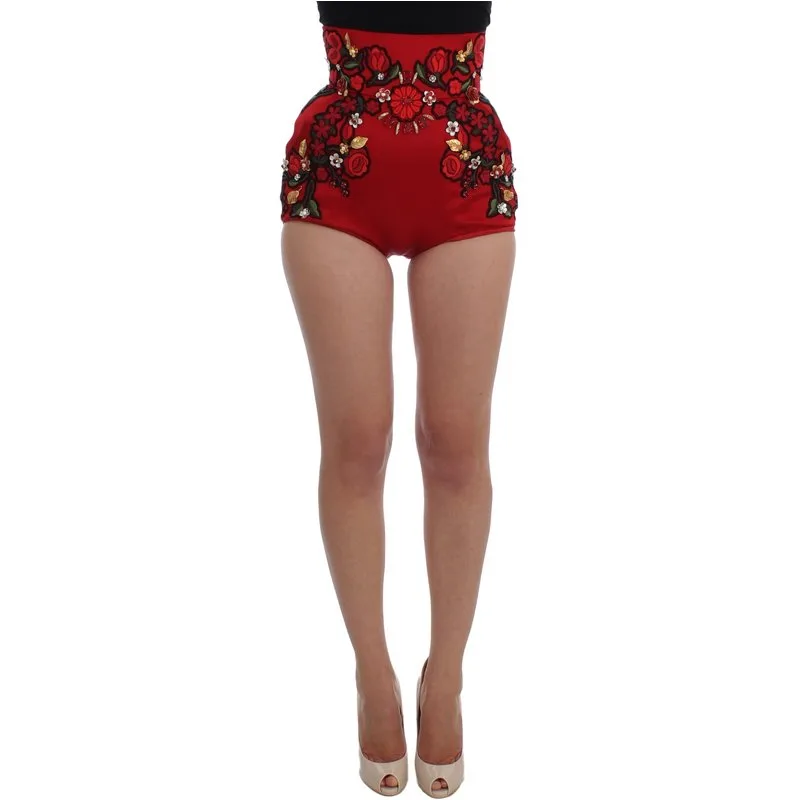 Dolce & Gabbana Rode Zijde Kristal Rozen Shorts