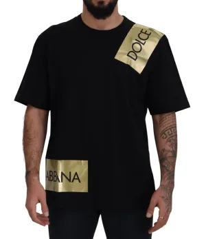 Dolce & Gabbana Zwart Goud DG Logo Katoenen Crewneck Dames T-shirt
