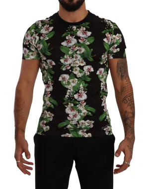 Dolce & Gabbana Zwarte Bloemenprint Crewneck Heren T-shirt