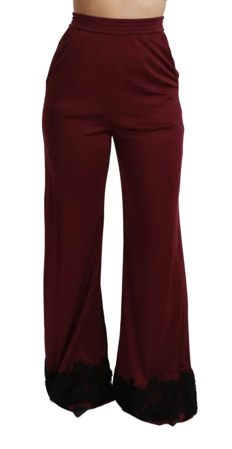 Dolce & Gabbana Vrouwen Zwarte Kant Hoge Taille Wijde Benen Marron Broek