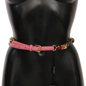 Dolce & Gabbana Roze Leren Kristal Gouden Gesp Riem