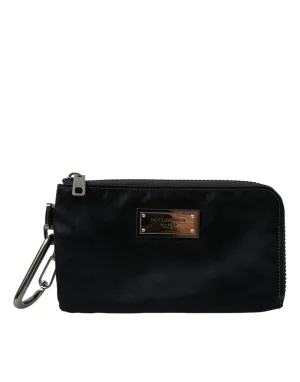 Zwarte Nylon Logo Plaque Sleutelhanger Pouch Clutch Tassen