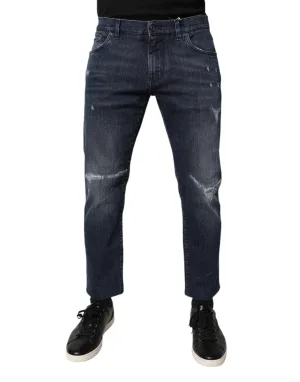 Dolce & Gabbana Kobaltblauwe Strepen Skinny Denim Katoenen Damesjeans