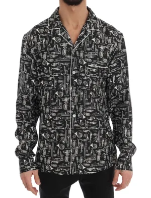 Dolce & Gabbana Zwarte Zijde JAZZ Motief Print Casual Shirt