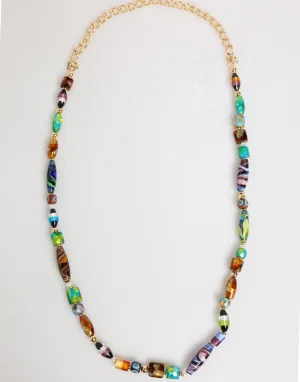 Multikleurige Murano Glas Kralen Messing Dames Sieraad Ketting