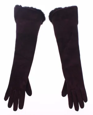 Dolce & Gabbana Vrouwen Paars Nerts Bont Geitenleer Suède Lederen Handschoenen