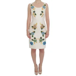 Dolce & Gabbana Dames Witte Brokaat Kristallen Sheath Jurk