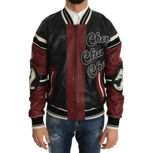 Dolce & Gabbana Mannen Leren Club Lounge Zwart Rood Jasje