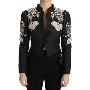 Dolce & Gabbana Zwart Jacquard Crystal Bloemjacket