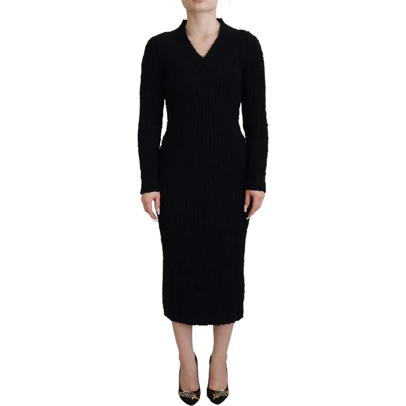 Dolce & Gabbana Dameszwarte Bodycon Sheath Midi Stretch Jurk