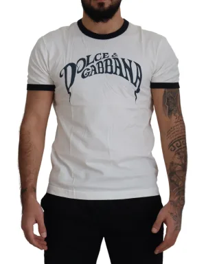 Dolce Gabbana Witte Logo Print Katoenen Crewneck T-Shirt
