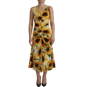 Dolce & Gabbana Witte Zonnebloemprint Sheath Midi Dameszijde