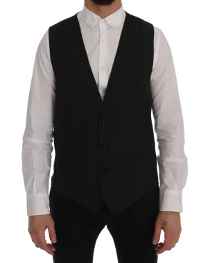 Zwarte Pinstripe Vest Klassieke Pasvorm