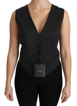 Dolce & Gabbana Zwarte Gestippelde Giletop Blouse