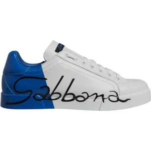 Dolce & Gabbana Witte Blauwe Leren Logo Lage Sneakers Schoenen