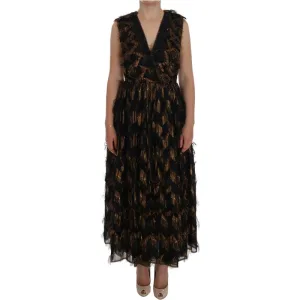 Dolce & Gabbana Vrouwen Zwart Zijde Bruin Franje A-Line Jurk