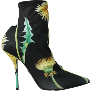 Dolce & Gabbana Zwarte Bloemen Jersey Stretch Enkellaarsjes Schoenen