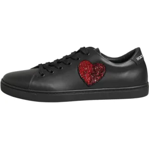 Dolce & Gabbana Zwarte Leren Kristallen Hart Sneakers Schoenen