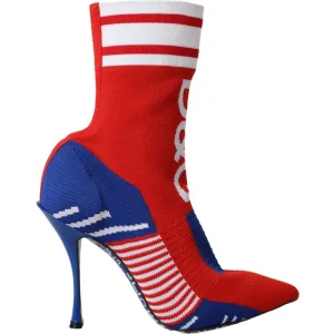 Dolce & Gabbana Rode Blauwe Rek Sokkenstijl Korte Laarzen Logo Schoenen