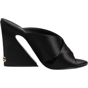 Dolce & Gabbana Zwarte Logo KEIRA Satijnen Slippers Sandalen Schoenen