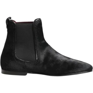 Dolce & Gabbana Zwarte Leren Bont Heren CHELSEA Boots Schoenen