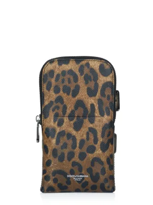 Dolce & Gabbana Zwarte Leren Logo Gecaptionneerde Lanyard Kaarthouder Portemonnee
