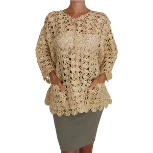 Dolce & Gabbana Dames Trui in Beige Vest, Gebreid in Gehaakt Raffia
