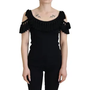 Dolce Gabbana Tsh83190 Zwarte Franje Top