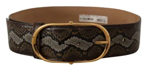 Dolce & Gabbana Dames Bruin Pythonleren Gouden Ovale Gesp Riem