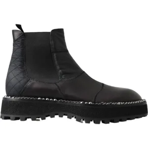 Dolce & Gabbana Zwarte Leren Instap Stretch Laarzen