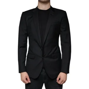 Dolce & Gabbana Mannen Zwart Stretch Kristal Bijen Slim Fit Pak