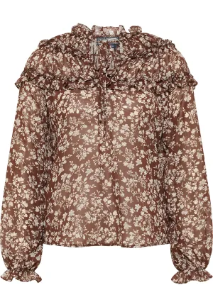 Dreimaster Blouse met ruches bridgeport Dames Donkerbruin wit