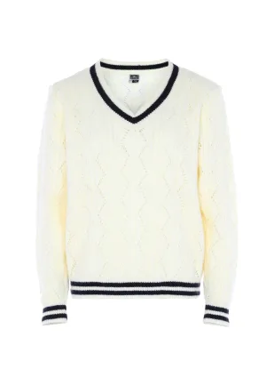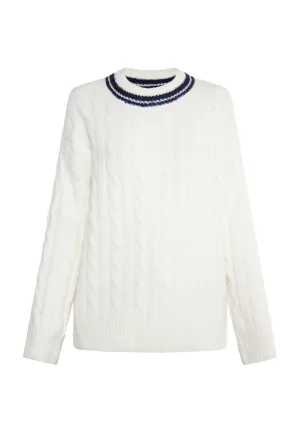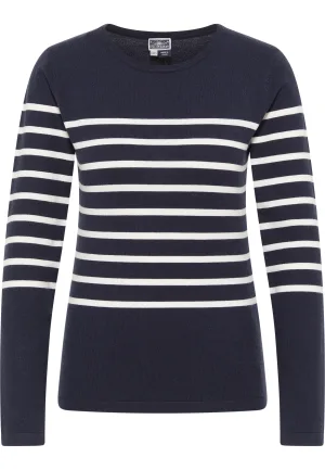 Dreimaster Gebreide trui takelage Dames marine wol wit
