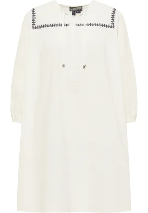 Dreimaster Midi-jurk met borduursel Dames wolwit