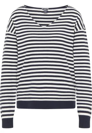 Dreimaster Gebreide trui Dames marine wol wit