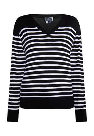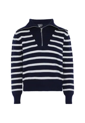 Dreimaster trui met strepen Dames Donker marineblauwe gebroken witte strepen